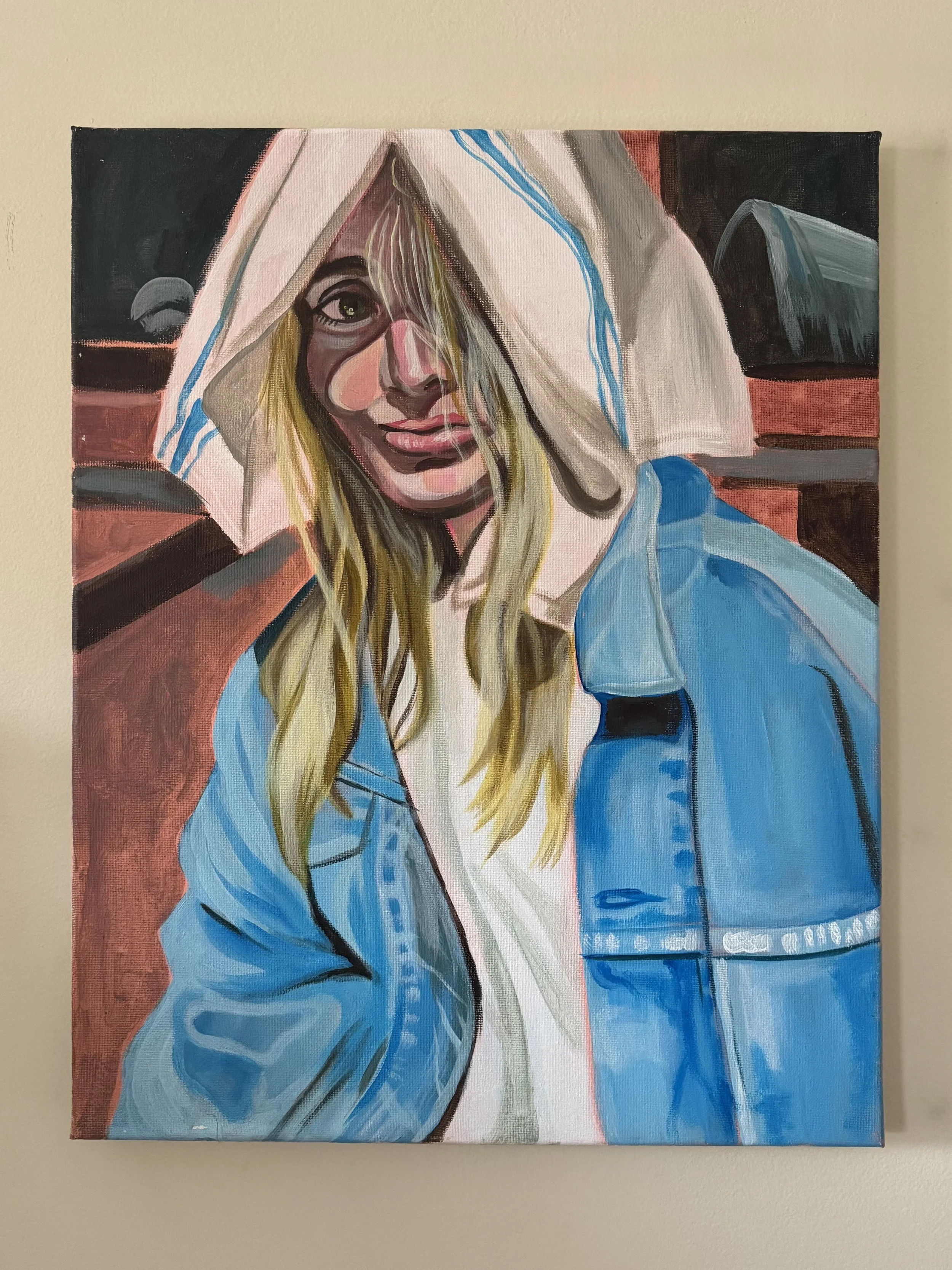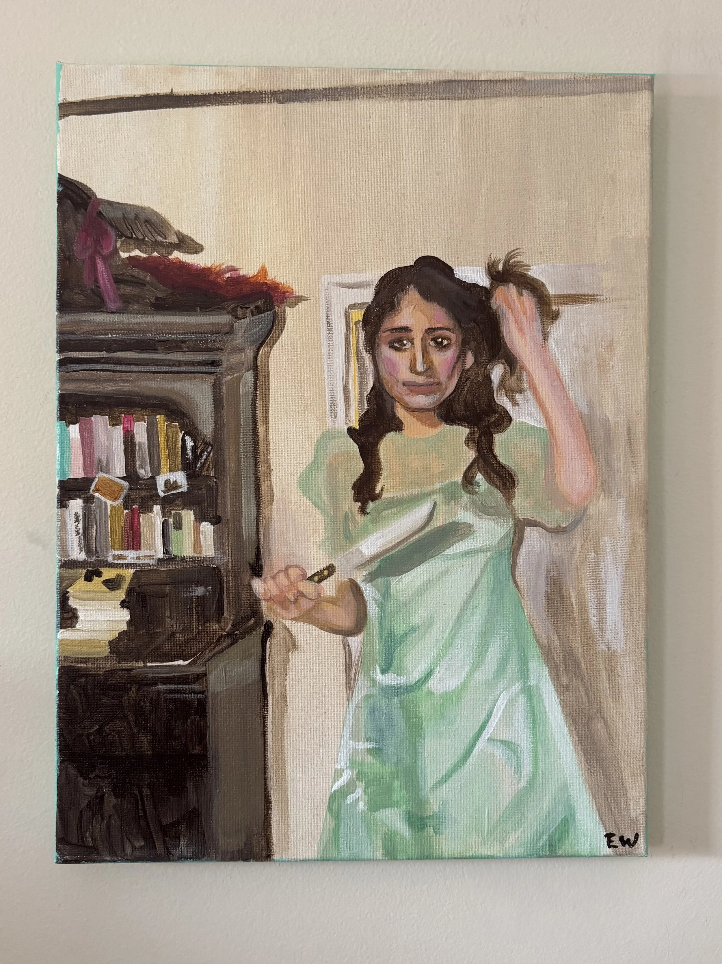 Emily & Knife, acrylic on canvas, 12 x 16"