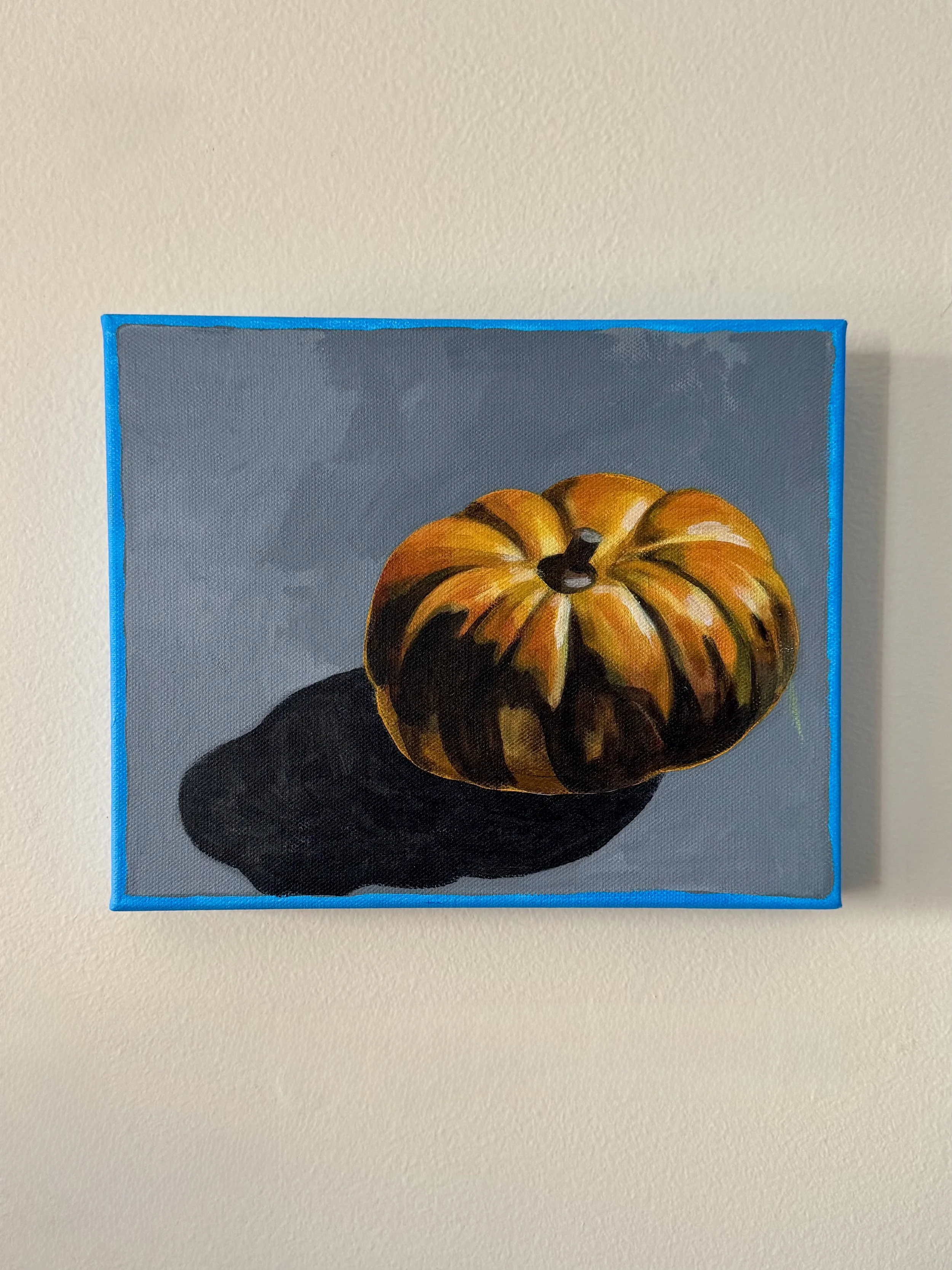 Sidewalk Pumpkin, acrylic on canvas, 8 x 10"